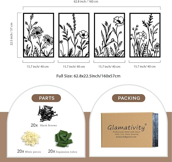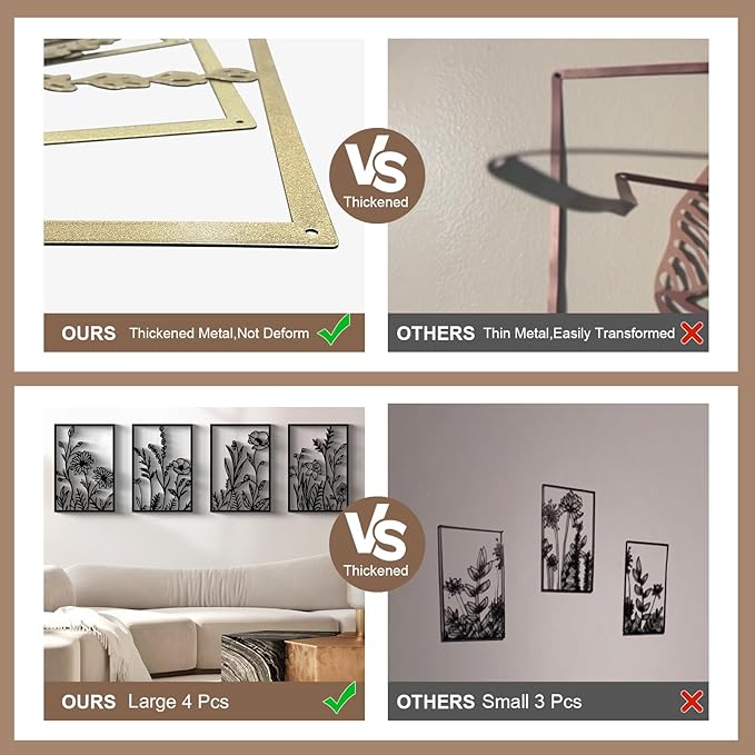 - 【Proper Size for Abstract Flowers Sense】 17 x 12'' for each piece and 4 pcs come in the whole pack. Various arrangements can be utilized with the abstract flowers metal wall art, which excels in radiating bright, natural energy. This piece not only infuses tranquility into any environment but also revitalizes the space.
