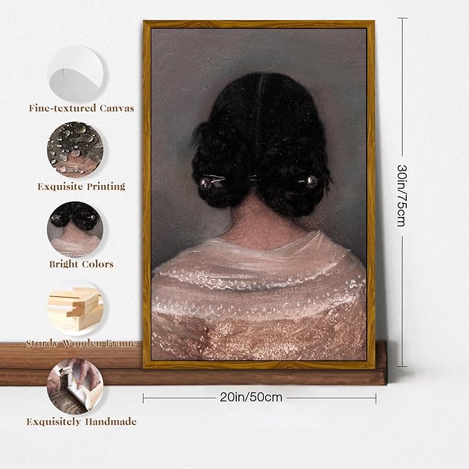 crmotu Vintage Framed Wall Art, Woman Back Portrait Canvas Painting, Elegant Lady Retro Artwork Prints, Classical Aesthetic Pictures Wall Decor Living Room Bedroom Bathroom Home Office 20x30in