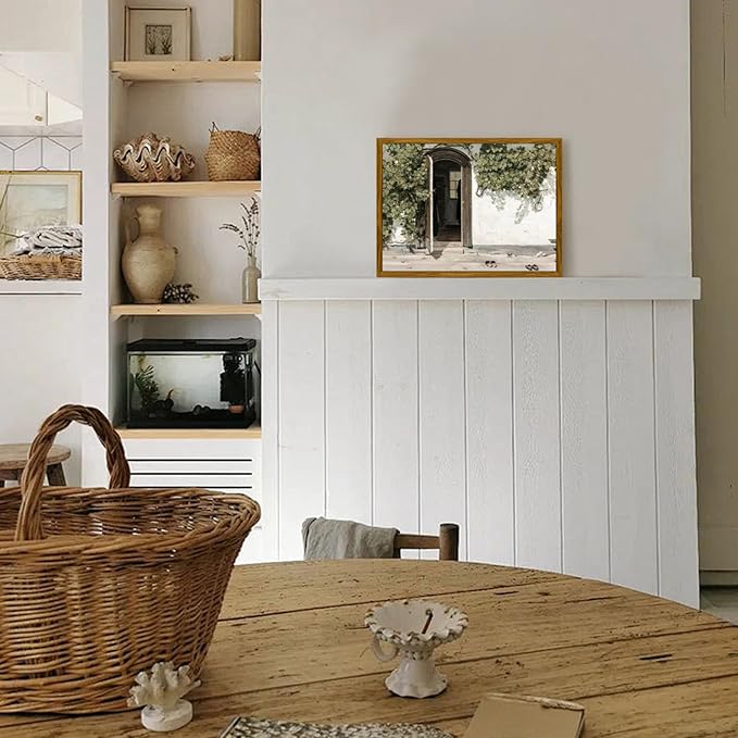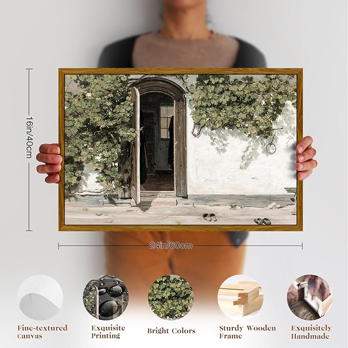 crmotu Vintage Framed Wall Art, Country Landscape Canvas Prints, Grapevine Gate Rustic Farmhouse Decor Painting, Nature Green Scenery Pictures Wall Decor Living Room Bedroom Bathroom Office 16x24in