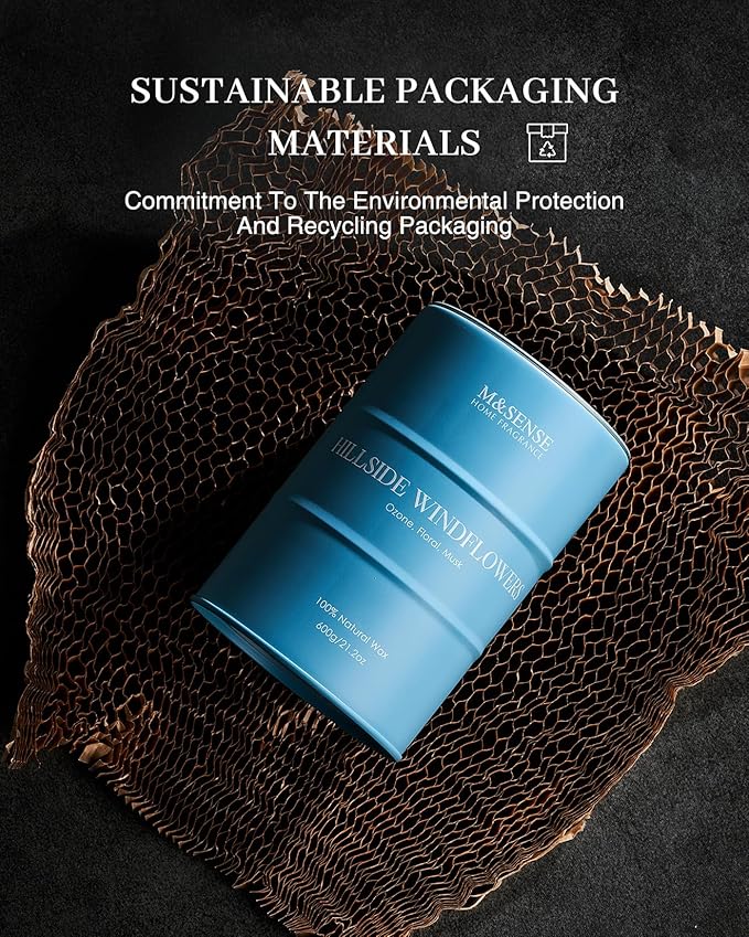 - ๐ Sustainable Material - M&SENSE candles are all crafted with the finest and most natural ingredients. Using high-end vegetable wax and unbleached cotton wicks in a reusable and recyclable tin. Packaged in recycled honeycomb paper and cardboard box for a more sustainable future.