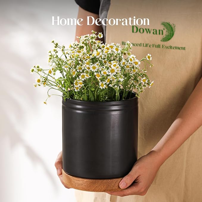 DOWAN 7.6" 360° Rotating Utensil Holder, Kitchen Utensil Holder for Countertop, Ceramic Utensil Crock, Large Cooking Utensil Caddy for Kitchen Counter, Protection Cork Bottom, Black