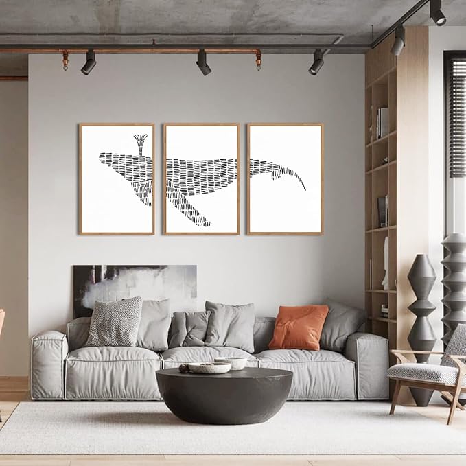- 【Black Line Wall Art】This painting is set of 3 which uses simple lines with black and white tones to depict a swimming whale. The vivid art prints can attract everyone's attention and create a comfortable and relaxed family atmosphere.