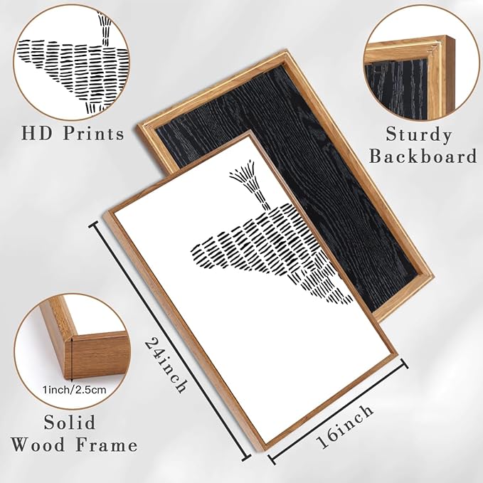 ANHUIB Large Abstract Wall Art Black and White Wall Decor 16x24 Inch Framed Minimalist Line Art Prints Whale Paintings Set of 3 for Living Room Bedroom Office