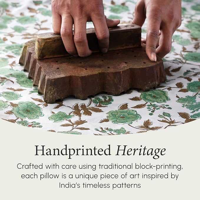 CPC 100% Cotton Throw Pillow Covers 18x18 Inch, Set of 2 Green Block Print Pattern Couch Pillow, Cute Boho Decorative Pillows for Living Room, Bedroom with Hidden Zipper- Moss Green