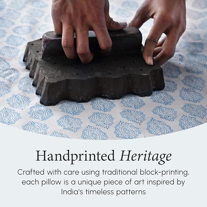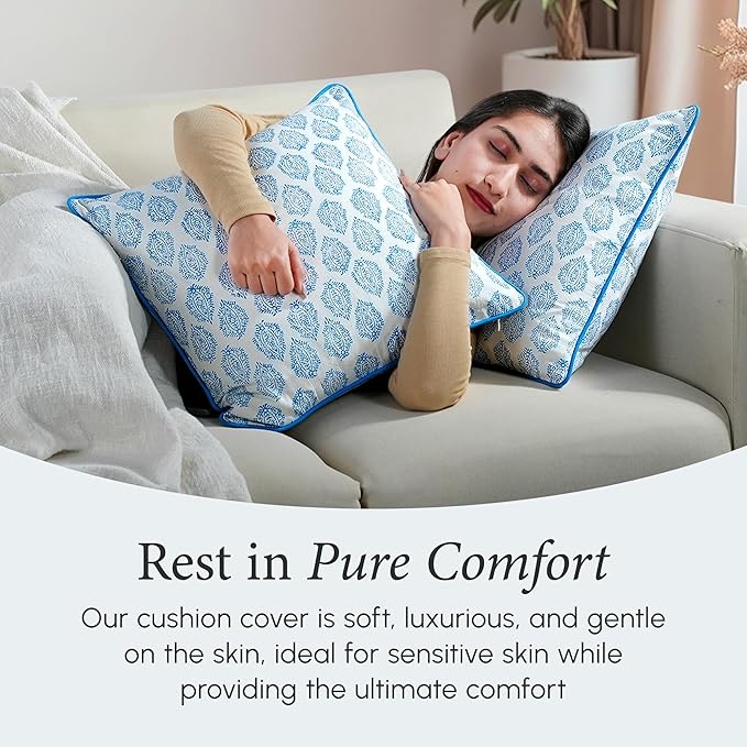 CPC 100% Cotton Throw Pillow Covers 18x18 Inch, Set of 2 Green Block Print Pattern Couch Pillow, Cute Boho Decorative Pillows for Living Room, Bedroom with Hidden Zipper- Royal Blue