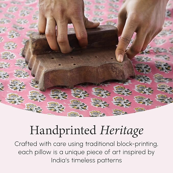 CPC 100% Cotton Throw Pillow Covers 20x20 Inch, Set of 2 Green Block Print Pattern Couch Pillow, Cute Boho Decorative Pillows for Living Room, Bedroom with Hidden Zipper- Poppy Pink