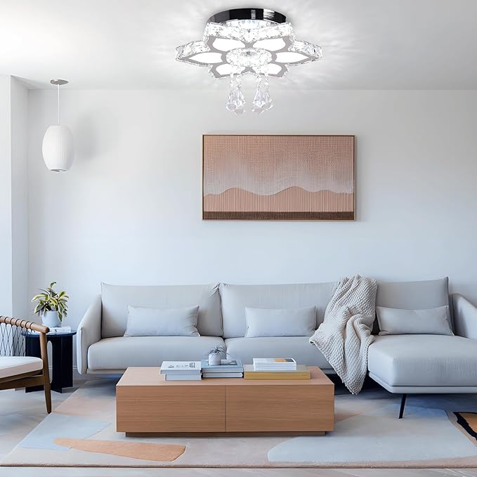 - Crystal Ceiling Light: This 16.1-inch crystal chandelier features a stunning flower-shaped design with clear acrylic crystals that add a touch of elegance to any room.