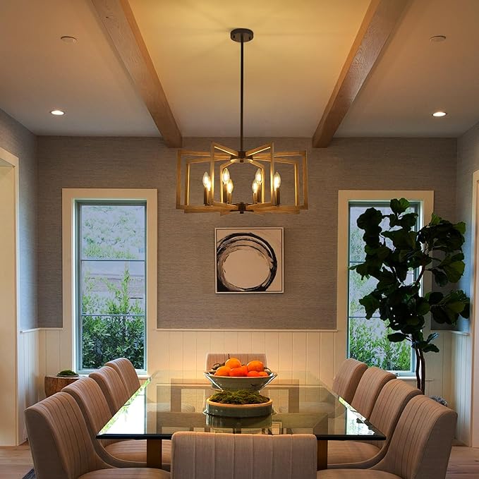 - Style & Design - Rustic chandelier is meticulously crafted by highly skilled craftsmen. Its consists of retro wood texture metal frame with a minimalist silhouette, which better balances aesthetics and functionality. The unique appearance gives a stylish and modern look that leaves a lasting impression.