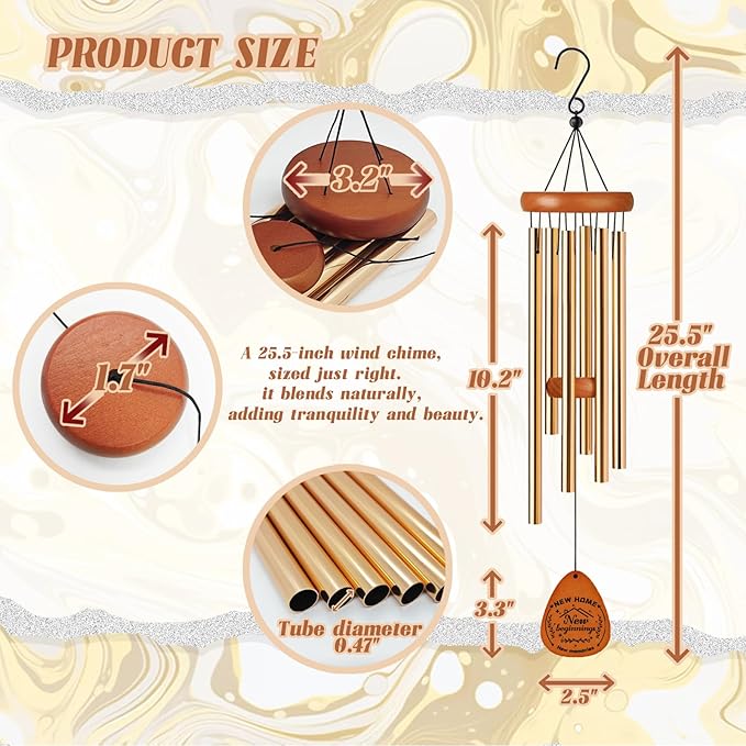 - New Home Ornament for Outdoors: Ideal for hanging on porches, patios, or gardens, this wind chime adds beauty and a soothing sound to any home. As housewarming party decorations, it enhances any outdoor setting while marking this significant milestone. Each breeze carries a peaceful tone, creating a welcoming atmosphere and making this house gift a lovely keepsake for years to come