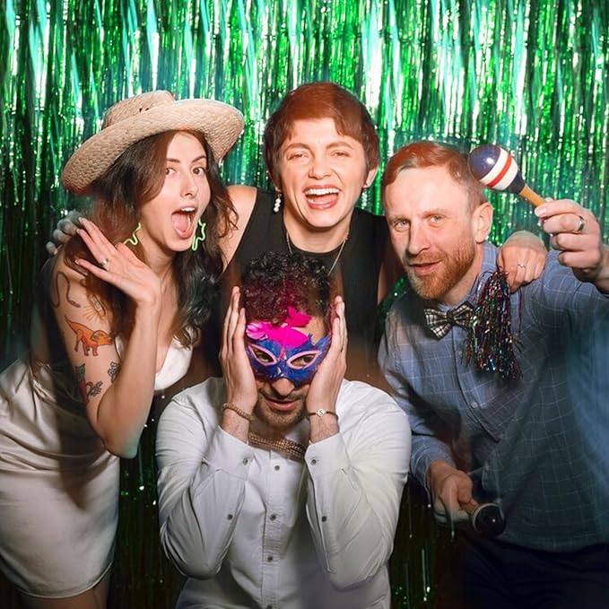 20 Pack Foil Curtain Backdrop Green Metallic Tinsel Foil Fringe Curtains Photo Booth Props for Birthday Wedding Engagement Baby Shower Bachelorette Christmas Holiday Celebration Party Decorations