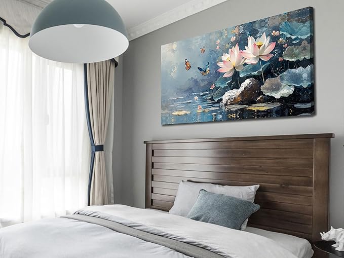 Ardemy Lotus Wall Art for Living Room Butterfly Canvas Art Wall Decor Textured Pictures Artwork Bedroom Kitchen Dining Home Office, Large 40"x20"
