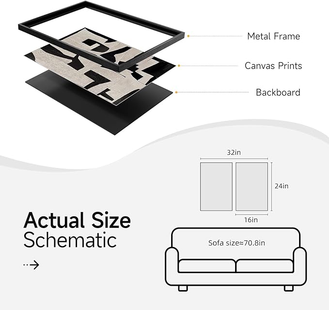 - [Framed Wall art]: A set of 2 large contemporary framed minimalist black and beige abstract wall art, each 16x24 inches, 2 pieces totaling 24" H x 32" W. Each Painting with a sturdy, rust-proof frame