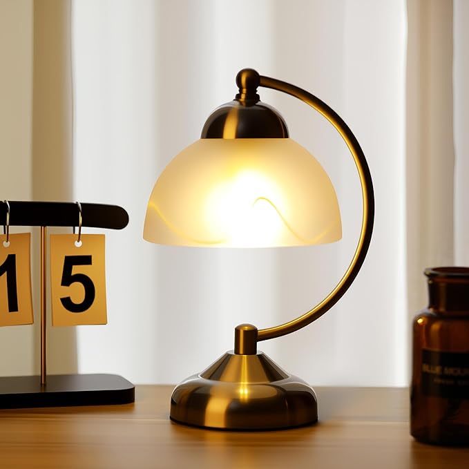 - Lampshade size: The lampshade is Eye-protecting frosted glass, 4.6 inches wide, and 4.9 inches high