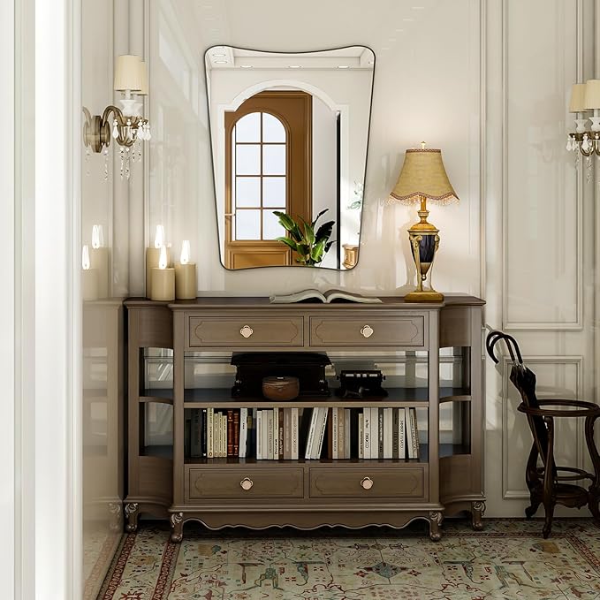 - Professional Craftsmanship: The vintage vanity mirror has rounded corners and frosted edges, which is safer than regular right-angle mirror. The modern bathroom mirror also uses high-definition high-quality explosion-proof lenses, which perfectly reflects the person or thing itself, and effectively reduces the potential safety hazards caused by the fragmentation of the mirror caused by external forces
