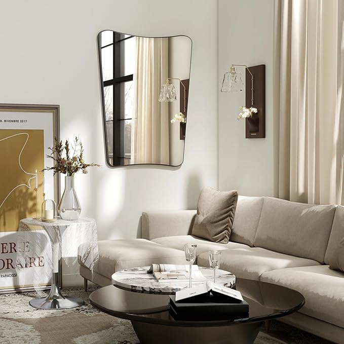 - Irregular Design: The irregular bathroom mirrors for wall cleverly combines straight lines and curves, breaking the previous regular graphic design, perfectly presenting the mirror while enhancing the overall beauty of space. It is not only a mirror but also a space decoration