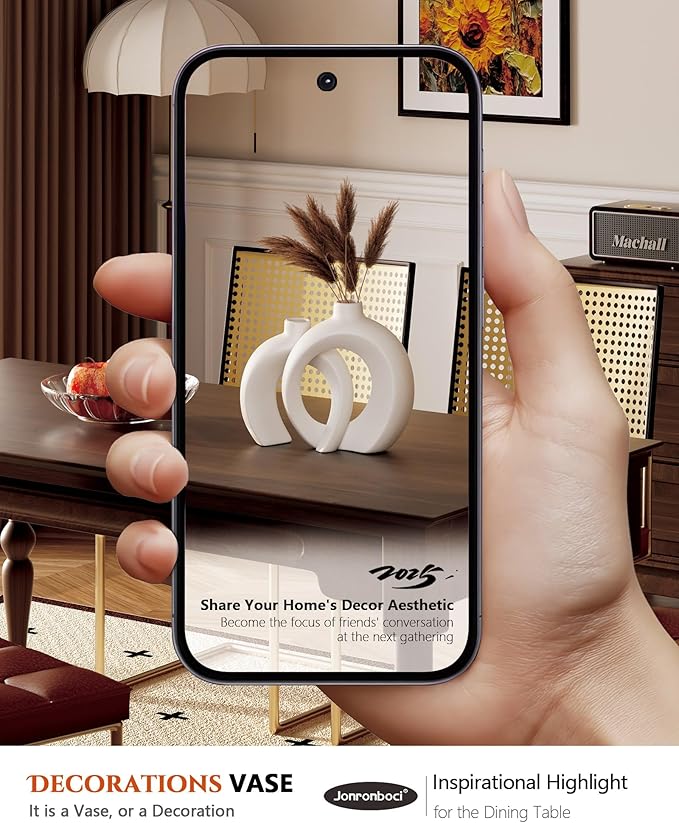 - 【Versatile Dried or fresh flowers Vases for Every Room】These vases go beyond just flower displays; they serve as versatile home decor pieces. The modern abstract hollow donut shape makes them perfect for fresh or artificial flowers and plants or pampas grass. Whether you place them individually or in combination, they suit various spaces, including living room, bedroom, kitchen, desktop, and entryway table decor . These vases also work wonderfully as centerpieces for minimalist mantle or book shelf.