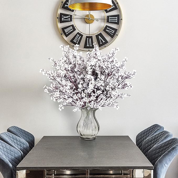 - [PACKAGE & SIZE]: The package has 6 babys breath (no vase included) packed in a box, adequate enough to match many holiday ornaments and satisfy your diverse. The real touch fake silk flowers have a total length of 19in. Each piece has 5 item parts, allows you to decorate your space easily.