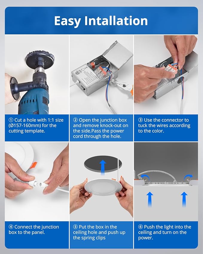 - IC Rated Safe Installation: Includes ETL-certified fireproof junction box, wire connectors. No measurements needed - simply cut along the provided template, connect the Jbox to the cable. Suitable for retrofit and new decoration.