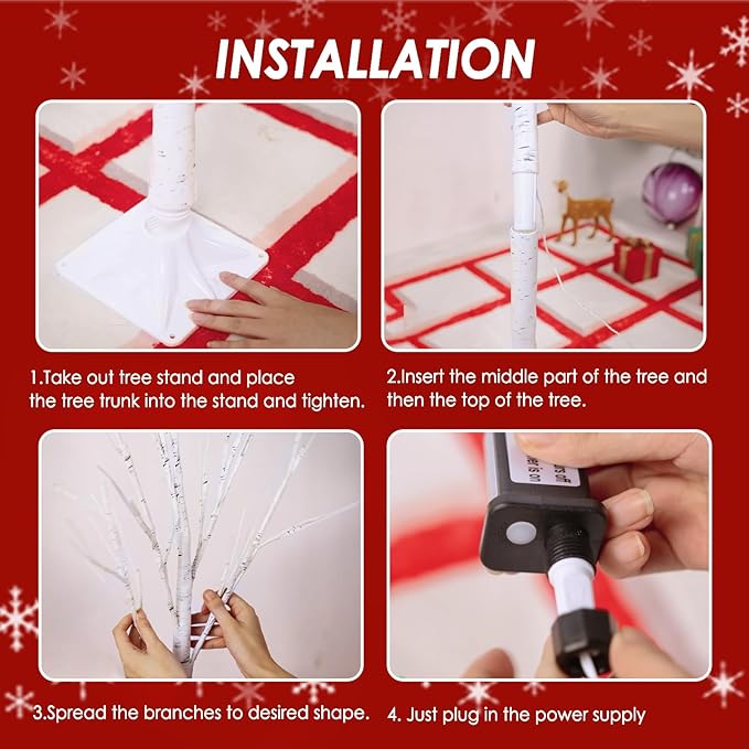 - 2024 New Upgraded Birch Tree: The 2-Pack 4FT tall lighted birch tree is equipped with 96 bright LED lights, dotted throughout the small and large branches. The adapter is UL certified to ensure safe. IP44 waterproof design, sturdy and stable square base for indoor and outdoor use, creating a romantic atmosphere for the family