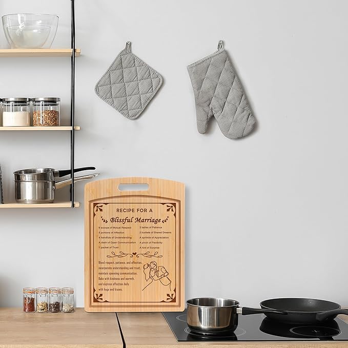 Joeyan Cutting Boards Wood Engraved Marriage Recipe Present for Wedding Engagement New Couples 2025 Bride Groom Bridal Shower Registry Anniversary Newlyweds Mr Mrs with Gift Box Double Side Grooves