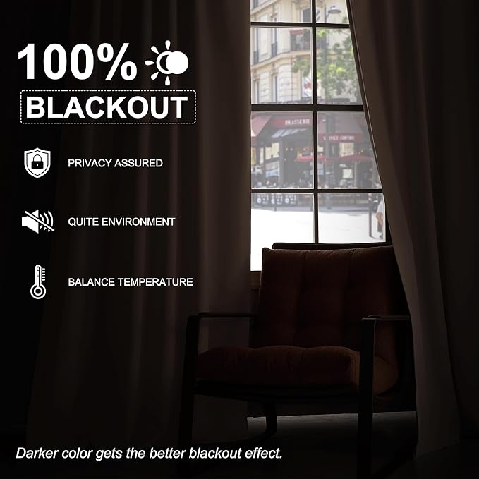 - 100% BLACKOUT: The curtains are designed to block out 100% sunlight and UV rays to darken your room completely. Suitable for late sleepers, shift workers, seniors, infants, kids, parents, students and computer operators to enhance the quality of sleep during the day.