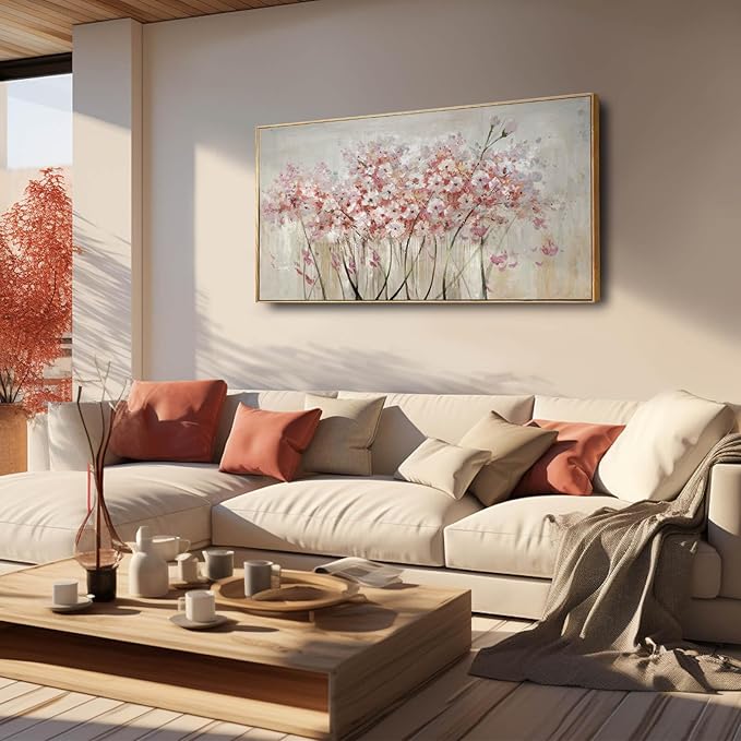 - Size and Package: White and pink pictures wall decor approx 24"x 48"; Suitable size makes it a great nature decor addition to your home. Easy to hang - All Signs Come With Pre-Installed Hooks.