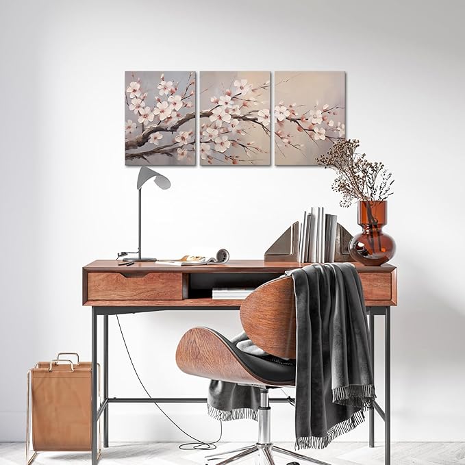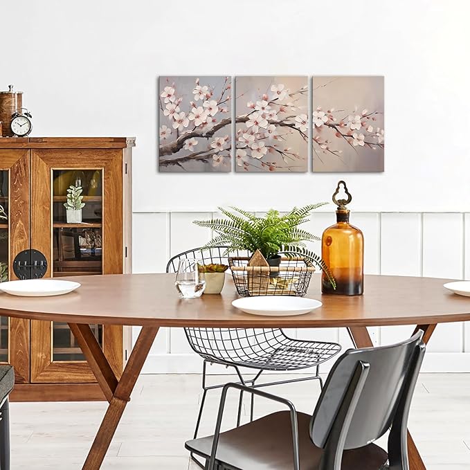 AoArtWZ Plum Flowers Canvas Wall Art Farmhouse Pictures Painting Elegant Floral Blossom Prints Artwork for Bedroom Wall Decor Framed