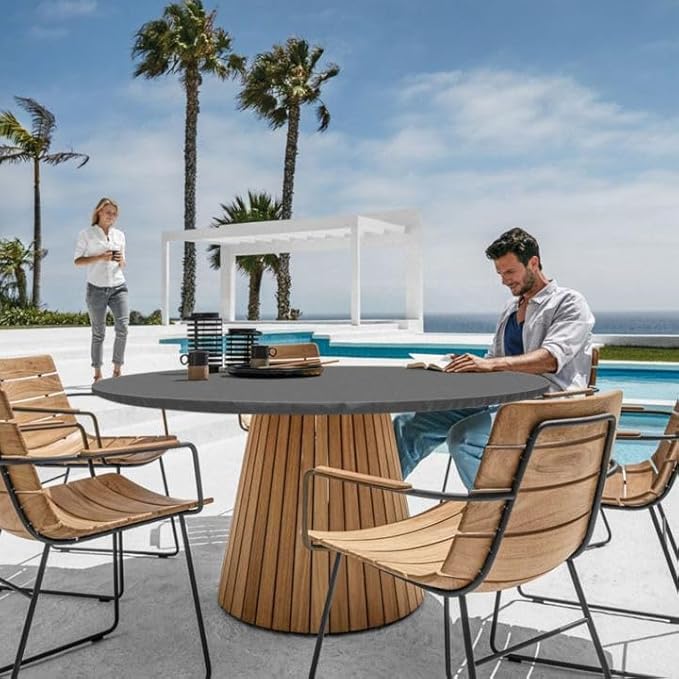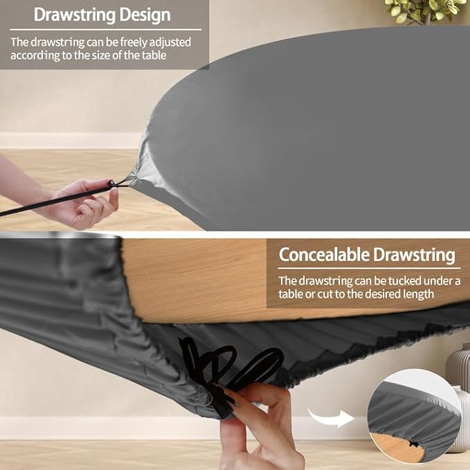 - 【Drawstring Design】Our tablecloth stands out from others with its unique feature. It adopts a drawstring design, allowing you to adjust the tightness of the straps according to the size of your table. With this feature, the tablecloth can snugly fit your round table, eliminating worries about shifting or being blown by the wind. Compared to traditional tablecloths, our round tablecloth is better suited to your table, providing you with an enhanced user experience.