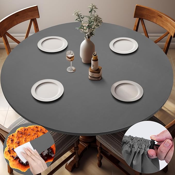 - 【Waterproof, Oil-proof, and Scratch-resistant Design】This circle table cover can effectively protect your table from scratches. Made of waterproof and oil-proof material, it effectively prevents oil and water from leaking onto the table. Easy to clean. Note: The tablecloths cannot be machine washed or bleached!