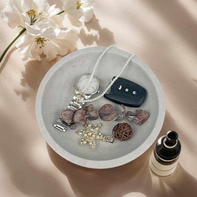Travertine Decorative Bowls for Home Decor, Fruit Bowl for Kitchen Counter, Keys Bowl for Entryway Table, Large Candy Serving Bowl for Table Centerpiece Office Modern Home Decor (Light Gray)