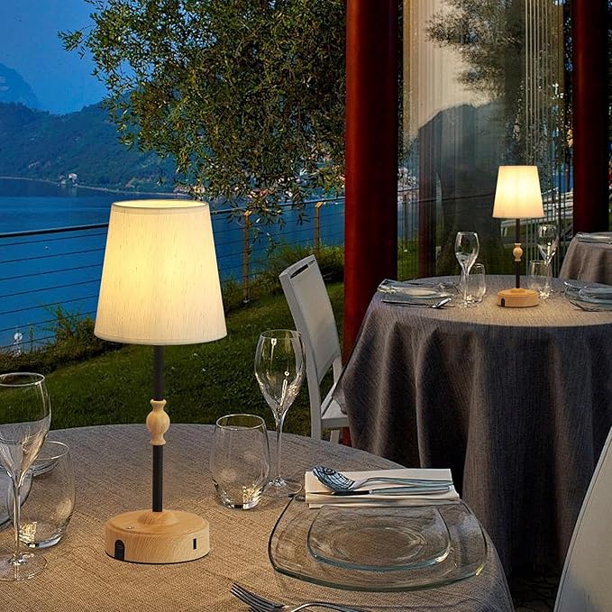 - [Portable Cordless Design]This is a practical cordless led table lamp with sleek simple modern classic design,The cordless LED desk lamp has a built-in rechargeable battery of 10000Amh,which ourdoor table lamp can last for up to 48 hours (at the lowest brightness setting) after each charge.Due to battery lamps portability,rechargeable and durability,Patio Table Lamp can be used as an emergency light in case of sudden power outages.Whether indoors or outdoors,rechargeable bedside lamp is the best warm battery opreated lamp that combines functionality and decoration.