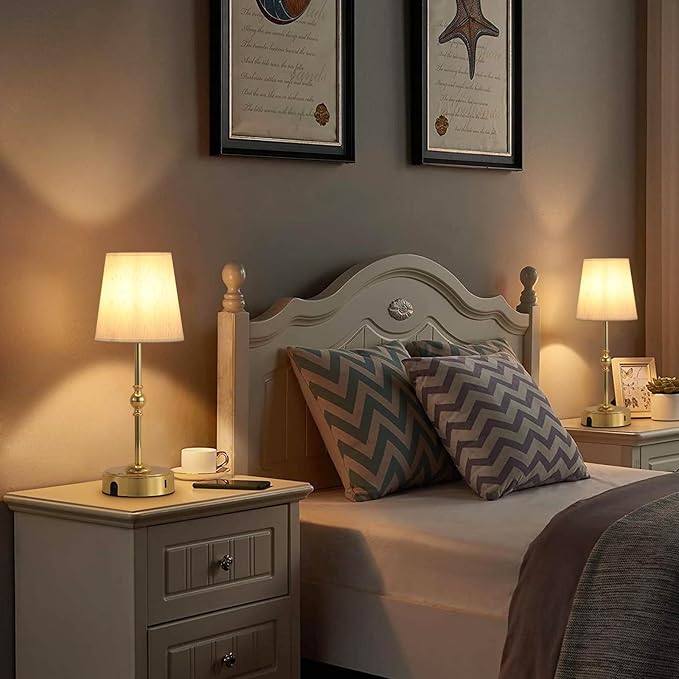 - [Easy Operation and Stepless Dimming]Touch Lamps for Nightstand dimmable touch control small table lamp is equipped with a touch sensor and is made of metal. You can easily control on/off by touch short press the lamp or long press to change the brightness, you can easily control the light ON/OFF or brightness adjustment for your needs. Bedside table lamp good to be an led night light for bedside led table lamp also a nice decor for living room windowsill, hallway and balcony, or as a daily light supplement for work.