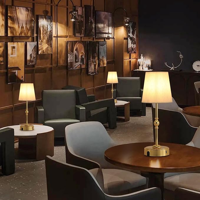 - [Dimmable lamp led bulb inclued] Dimmable bedside table lamps offer 20%-100% dimming brightness options,we are equipped with a 5W dimmable energy-saving bulb.Cordless Gold table lamp is very suitable to decorate anywhere in your home,especially bedroom,living room,hallway and balcony,study room,guest room,kids room, nursery, office, dorm.Battery table lamp is the ideal lamp for camping,RV,patio,garden,kitchen,restaurant and so on.