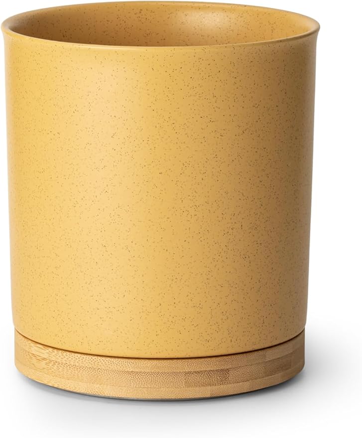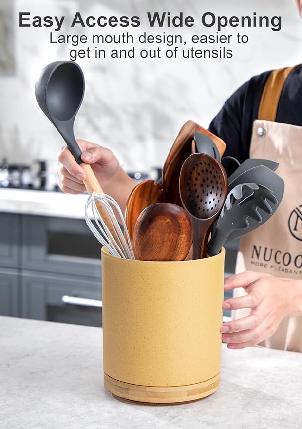 Nucookery 360°Rotating Utensil Holder, 7.2" Kitchen Utensil Crock, Ceramic Cooking Utensil Organizer with Countertop-Protection Cork Bottom for Farmhouse Kitchen Decor Christmas (Yellow Sand)