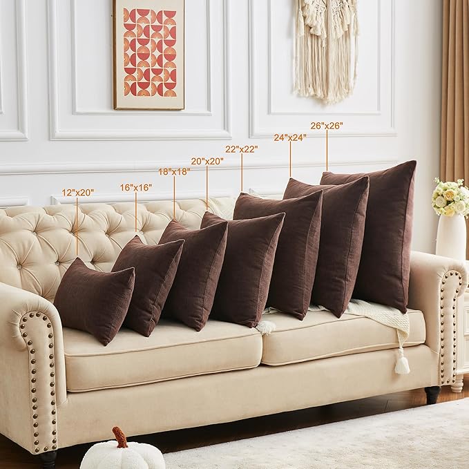 - ORDER ONLY THROW PILLOW COVERS: Including 2 or 4 pillow covers without inserts.12"x20", 16"x16", 18"x18", 20"x20" , 22"x22", 24"x24", 26"x26" inch, Please allow 1-2cm deviation because of manual cutting and measurement. Color may be different in different light or on different screen.