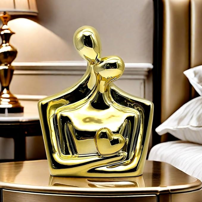 Couple Sweethearts Lover Hug Electroplate Statue Figurines Sculpture Ceramic Collectible Gifts for Office Home Decor Desk Accessories Decoration Figurine (Gold)