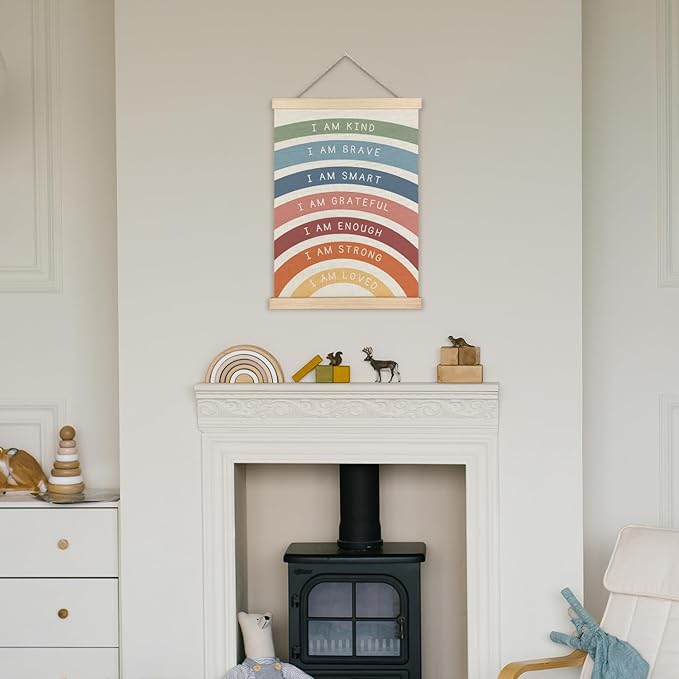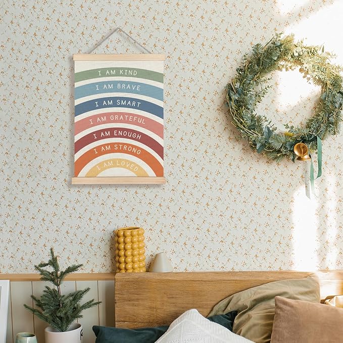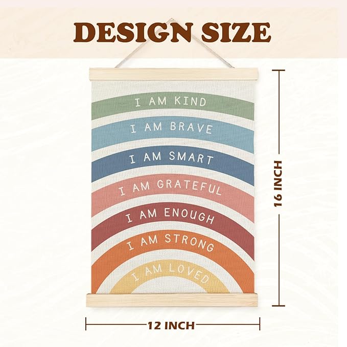 Supwhd Positive Affirmations Poster, I am Kind Brave Wall Art Poster, Boho Nursery Decor, Boho Rainbow Wall Art Decor for Kids Room Classroom Nursery Playroom, 12x16