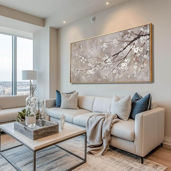 XIANSHOU Plum blossom Wall Decor White Flowers Painting on Canvas Nature Wall Art for Bedroom 24"x 48" Wall Decorations for Living Room Office