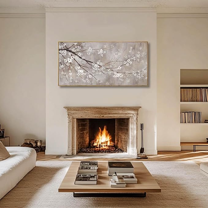 Flowers Wall Art Grey Pictures Wall Painting Large Framed Canvas Art Landscape Artwork for Dining Room Home 29"x 58" Ready to Hang
