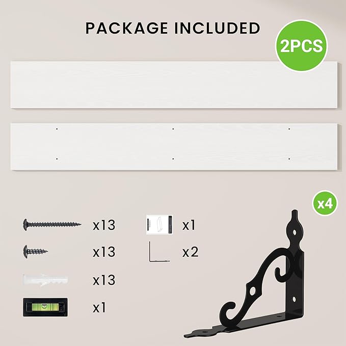- Perfect Home Decor: This wood shelf fits rustic style, or vintage style home decor, rustic wood grain and exquisite S-shaped brackets will make your home full of modern and elegant romance. Our floating shelf makes full use of the wall, and let your room and bathroom look so cute