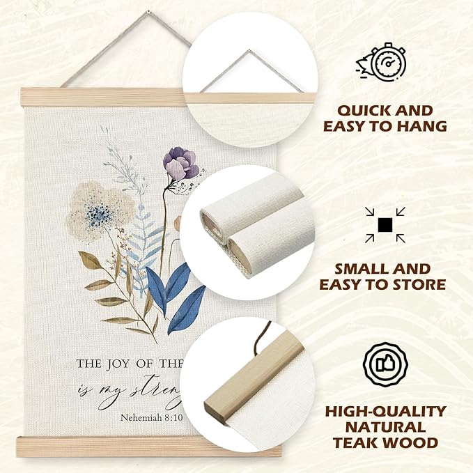 Supwhd Christian Wall Decor, the Joy of the Lord is My Strength Bible Verses Wall Decor, Scripture Wall Art for Bedroom Living Room Office 16x24