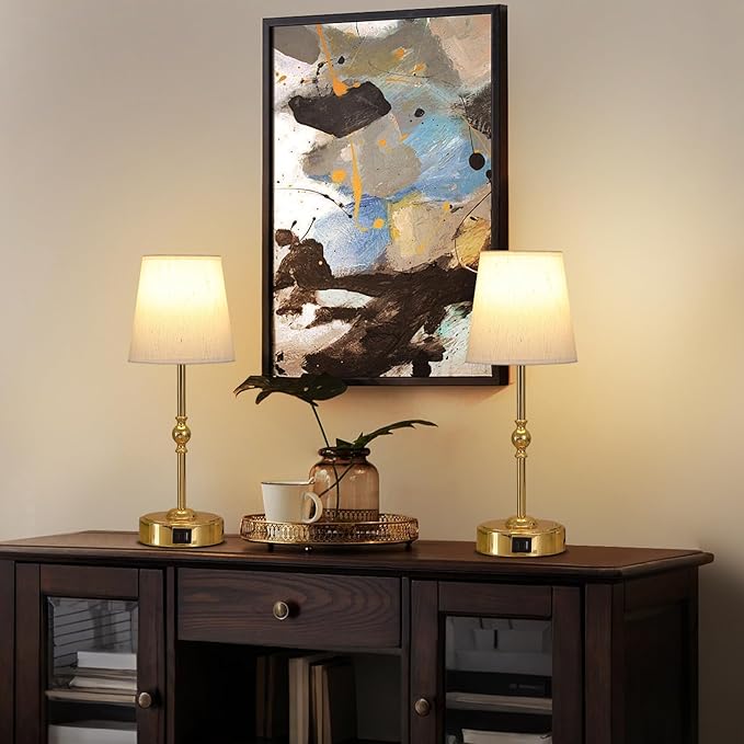 - PRACTICAL USB CHARGING PORTS:This small lamp features two built-in USB charging ports,the bedside lamps with a USB-C port and a USB port which can stably maintain 5V 2.1A output,table lamp for bedroom makes your phone,tablet,watch,headsets,diffuser,speakers and other electronic devicesare charged whether the lamps for nightstand lamp is on or off.Lamps for living room fully save your time and super handy to operate.