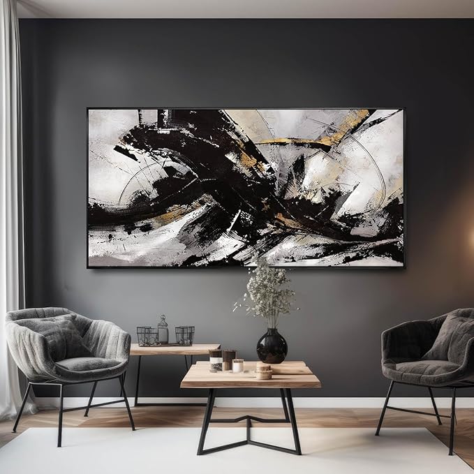 Black Wall Art Abstract Wall Decor for Living Room Framed Wall Art Canvas Art Grunge Artwork Large Office Pictures for Men 24”x48”