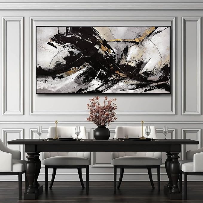 - Wall Decoration Size: 24"x 48", black and gold painting suitable size makes it a great decor addition to your living room,dinning room home and office.