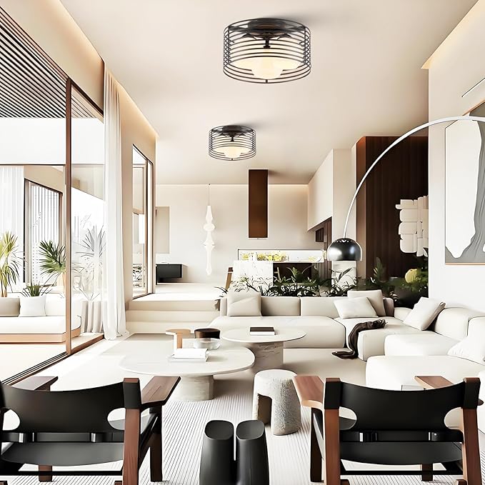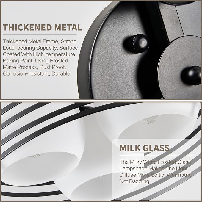 - Thickened Circular Metal Frame:The thick matte black metal material gives the ceiling light a sense of heaviness, and the appearance is full of design sense. It has high decorative, practical and durable properties. The external metal frame can fully protect the frosted milky white glass lampshade from damage