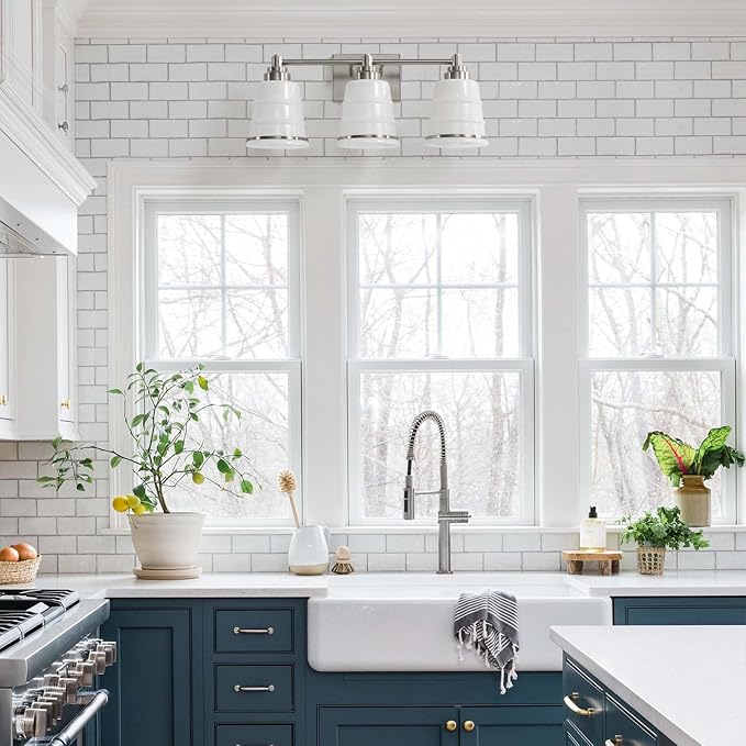 - Unique Design:Our's bathroom vanity light comes with milky frosted glass, adopting fashionable brushed nickelcolor,designed to emit a soft and inviting glow and adds a touch of elegance and sophistication to any room,creat a soothing lighting atmosphere.The design style of the lamp body complements various decorative styles.