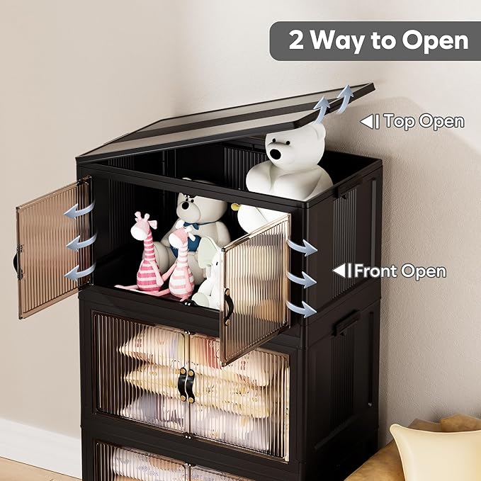 - 【Magnetic Doors & Rotating Wheels】The bins offer two opening options: front or top. The magnetic closure allows easy access. The 4 wheels make them easy to move, ideal for use in storage containers and closet organization in any room like your closet or bathroom.