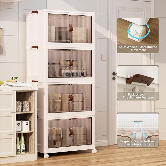 - 【Magnetic Doors & Rotating Wheels】The bins offer two opening options: front or top. The magnetic closure allows easy access. The 4 wheels make them easy to move, ideal for use in storage and organization in any room like your closet or bathroom.