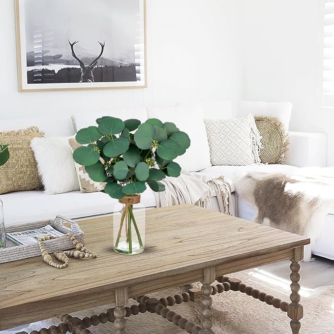 - MULTIPURPOSE ACCENTS: Whether you’re hosting a rustic-themed event or going for a nature-inspired decor style, our faux eucalyptus arrangement is the ideal foliage decoration to create wonderful table centerpieces. Pair it up with other fake flowers to add gorgeous variety and texture to your space.