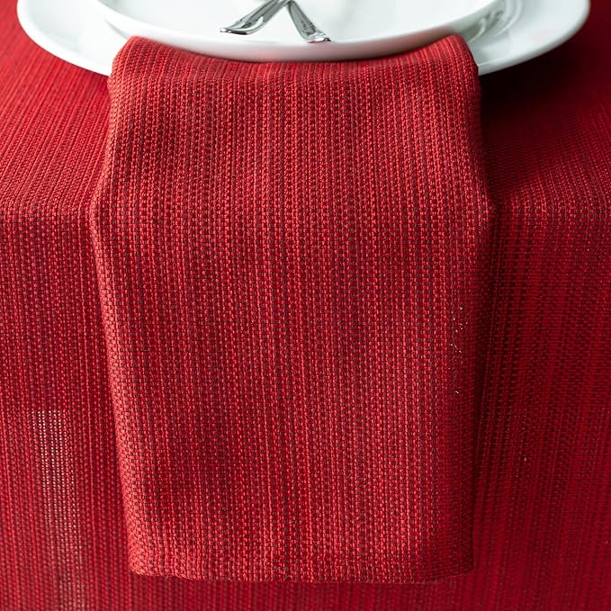 - MATCHING FABRIC TABLECLOTH SOLD SEPARATELY. SEARCH AMAZON FOR “Benson Mills Textured Tablecloth Millennium Red”.